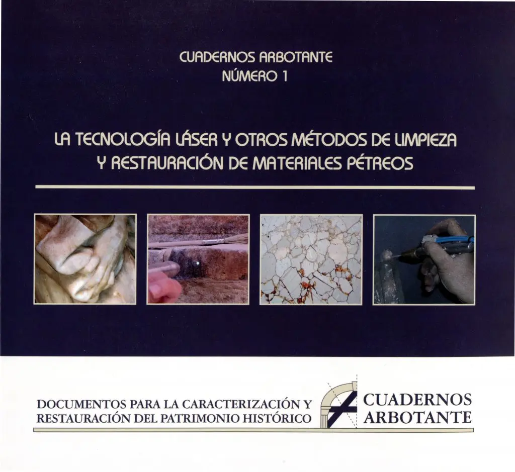 “Soportes para la limpieza química de la piedra” y “Métodos químicos de limpieza y restauración de la piedra” en GISBERT AGUILAR, J. (coor) La tecnología láser y otros métodos de limpieza y restauración de materiales pétreos. Cuadernos Arbotante nº 1 . Zaragoza: Libros Pórtico, 2010, p. 45-78. ISBN: 978-84-7956-078-2.