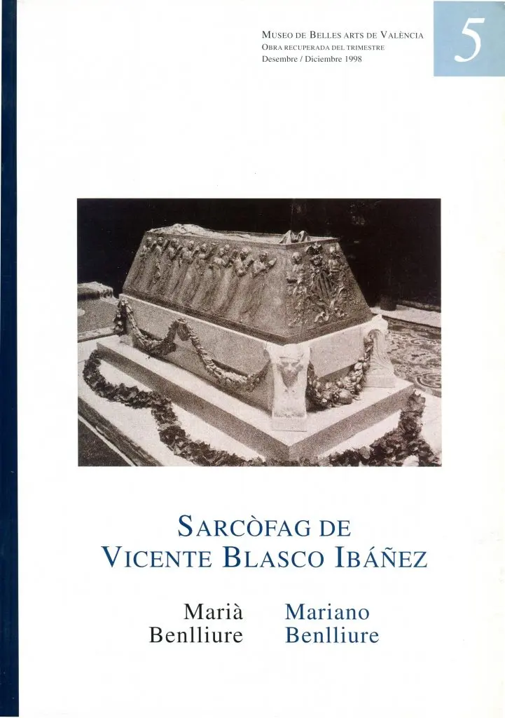 “La restauració” en Sarcòfag de Vicente Blasco Ibáñez. València: Generalitat Valenciana. 1998. Dipòsit legal: V-4815-1998.El sarcòfag de Vicent Blasco Ibañez es una peça creada per a formar part d’un complexe monument funerari. Segons el projecte, l’obra escultòrica havia d’estar inclosa al bell mig de l’espai arquitectonic del mausoleu disenyat per Javier Goerlich Lleó. El sarcòfag de bronze i els elements de marbre que el sostenen, situats damunt de una gran llosa de granit, tancaven la cripta que contenia el feretre amb el cos del difunt. El visitant podia itinerar al voltant de l’obra i també observar-la zenitalment, desde una balaustrada que ocupava el centre de l’espai del mausoleu.